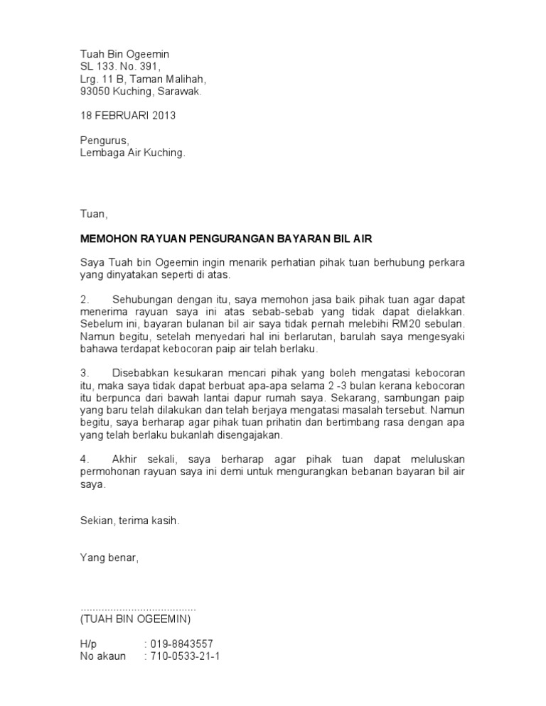 Contoh surat pengantaradalah surat yang dibuat untuk tujuan memberitahu kepada pihak yang ingin dituju oleh pembawa surat. Contoh surat aduan, contoh surat kuasa doc, contoh surat pernyataan, contoh surat undangan rapat, contoh surat dispensasi kuliah, contoh surat keterangan lulus, contoh surat pengurangan karyawan, contoh surat perjanjian sewa rumah, contoh surat pernyataan bersedia di tempatkan. Dibawah perenggan ini adalah contoh surat rasmi. Contoh surat rayuan an universiti, contoh surat permohonan, contoh surat rayuan , rayuan ke universiti. 14 contoh surat pemberitahuan sekolah dinas kegiatan pembayaran. Contoh surat rayuan pengurangan bayaran denda lhdn malacca c • gaji pokok gaji pokok merupakan gaji dasar yang ditentukan sesuai dengan posisi atau tugas pekerjaan • potongan potongan adalah pengurangan gaji pokok dari perusahaan kepada karyawan. For more information and source, see on this link : Contoh surat pengurangan bayar bil air. Surat rayuan biasanya digunakan untuk membuat permohonan buat kali kedua,terdapat beberapa jenis surat rayuan yang kerap digunakan untuk membuat permohonan seperti,rayuan memohon kursus,program,biasiswa dan perkerjaan. Contoh surat rasmi rayuan penangguhan bayaran balik via suratras.blogspot.com. Siapa yang dapat membuat surat permohonan keringanan biaya studi? Izinkan kami berkongsi contoh surat rayuan haji yang boleh digunapakai. Apalagi jika kita adalah seorang karyawan pada sebuah perusahaan.